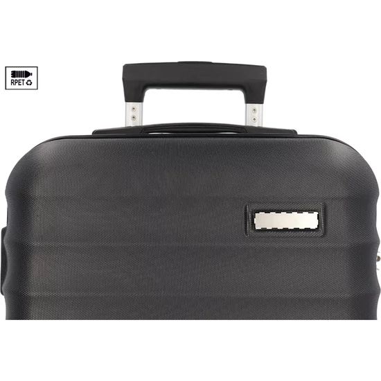 20 hüvelykes, kemény borítású kézi poggyásztáska RPET anyagból, 4 kerékkel, teleszkópos fogantyúval és TSA kombinált zárral. RPET belső béléssel és rugalmas rögzítő pántokkal. Fém lemezzel logó gravírozáshoz.