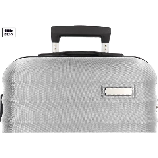 20 hüvelykes, kemény borítású kézi poggyásztáska RPET anyagból, 4 kerékkel, teleszkópos fogantyúval és TSA kombinált zárral. RPET belső béléssel és rugalmas rögzítő pántokkal. Fém lemezzel logó gravírozáshoz.