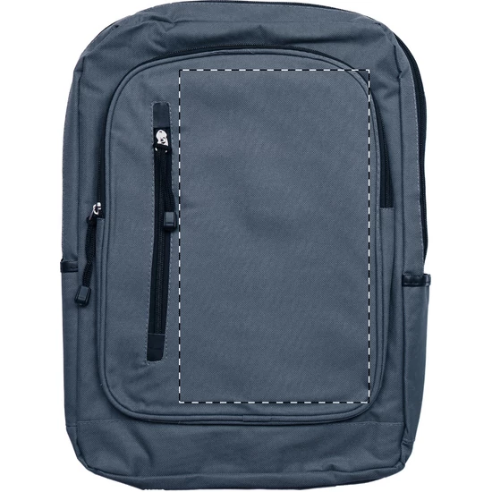 Hátizsák többféle cipzáras rekesszel, párnázott laptoptartó rekesszel (15") és állítható vállpántokkal. 600D poliészter.