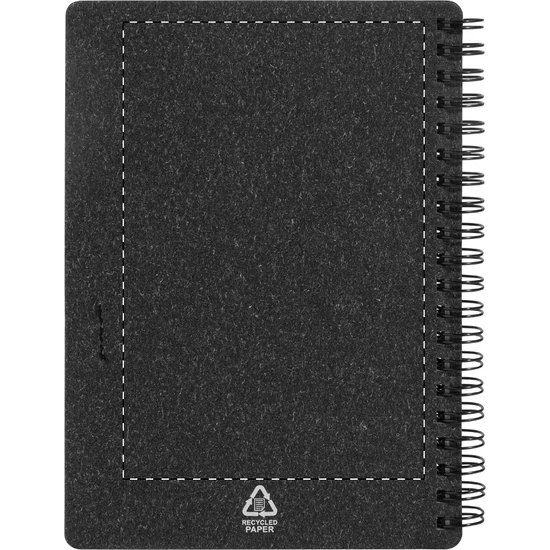 | Újrahasznosított papír spirál jegyzetfüzet 80 vonalas lappal. A6 méretű. Tartalmaz egy újrahasznosított papír és újrahasznosított PP anyagú golyóstollat kék tollbetéttel. | |