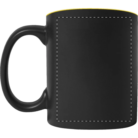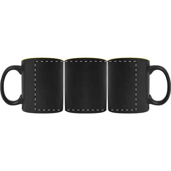 Fekete kerámiabögre, színes belső résszel, 350 ml. A gravírozott logó a bögre belsejével megegyező színű. Dobozban szállítjuk.