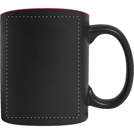 Fekete kerámiabögre, színes belső résszel, 350 ml. A gravírozott logó a bögre belsejével megegyező színű. Dobozban szállítjuk.