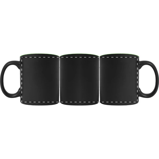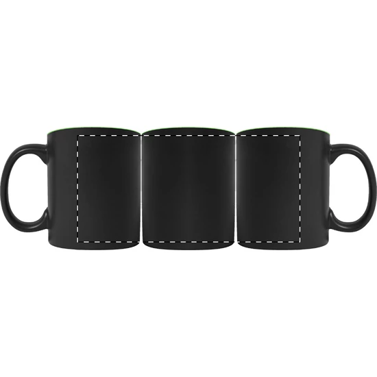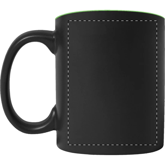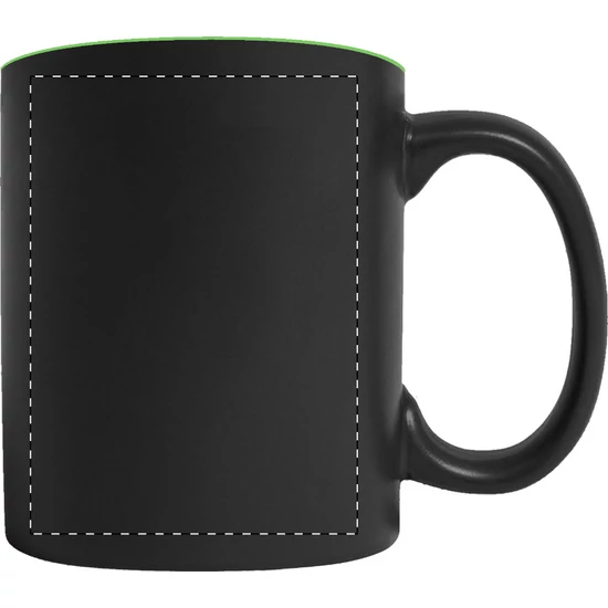 Fekete kerámiabögre, színes belső résszel, 350 ml. A gravírozott logó a bögre belsejével megegyező színű. Dobozban szállítjuk.