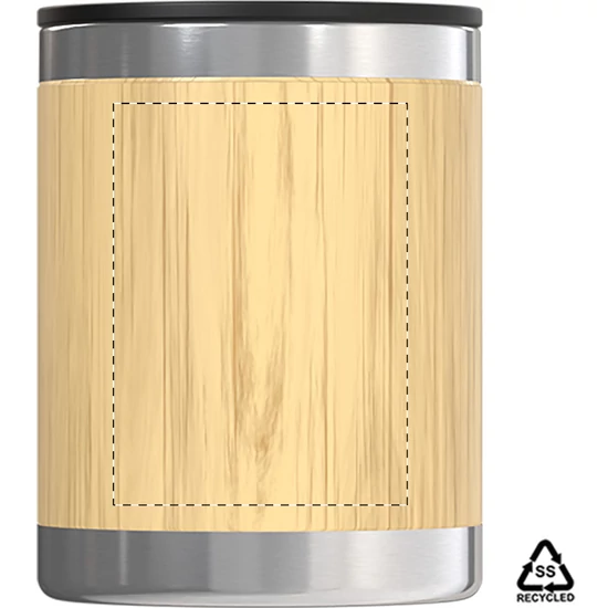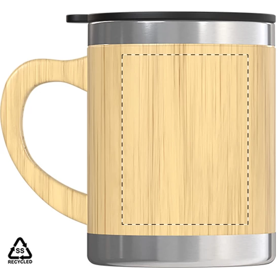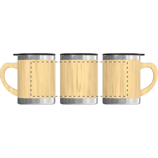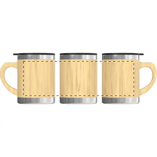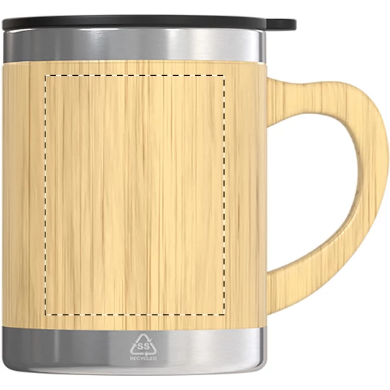 | Bambusz borítású, duplafalú újrahasznosított rozsdamentes acélból készült, hőszigetelt thermo bögre bambusz fogantyúval és PP ivófedéllel, 300 ml. | |