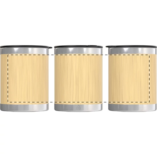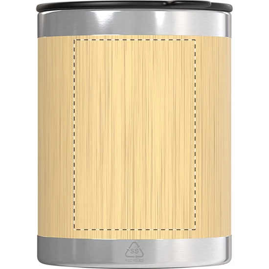 | Bambusz borítású, duplafalú újrahasznosított rozsdamentes acélból készült hőszigetelt thermo pohár PP ivófedéllel, 300 ml. | |