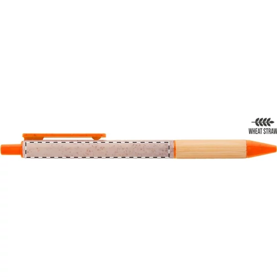 Környezetbarát búzaszalma műanyag golyóstoll bambusz markolattal és színes részekkel. Kék tollbetéttel szállítjuk.