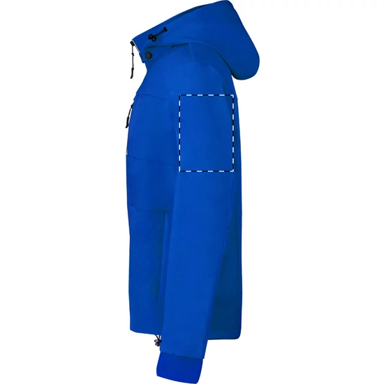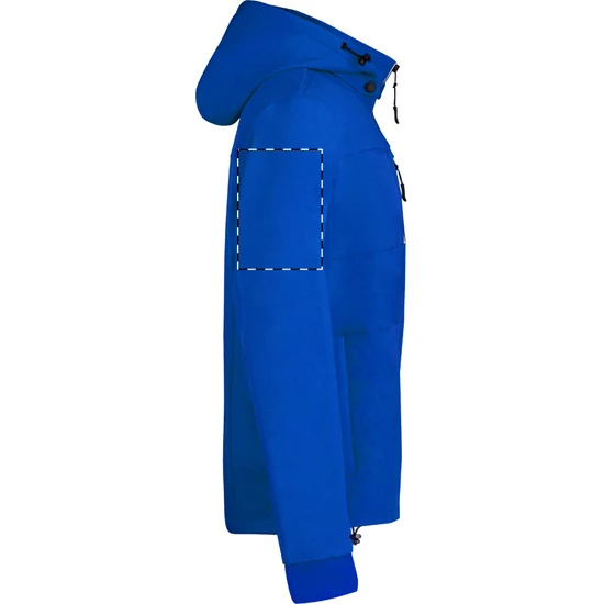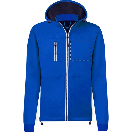 | Szél- és vízálló, cipzáras softshell kabát 2 oldalzsebbel, 1 első zsebbel, állógallérral és levehető kapucnival. 100% poliészter, 300 g/m². | |