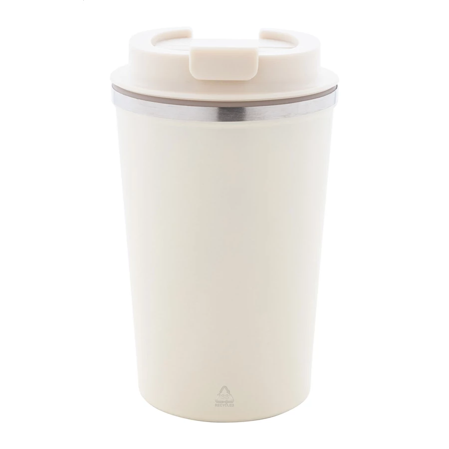 Duplafalú, újrahasznosított rozsdamentes acélból készült hőszigetelt thermo pohár, PP ivófedéllel. 350 ml.