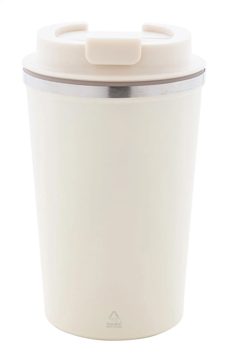 | Duplafalú, újrahasznosított rozsdamentes acélból készült hőszigetelt thermo pohár, PP ivófedéllel. 350 ml. | |