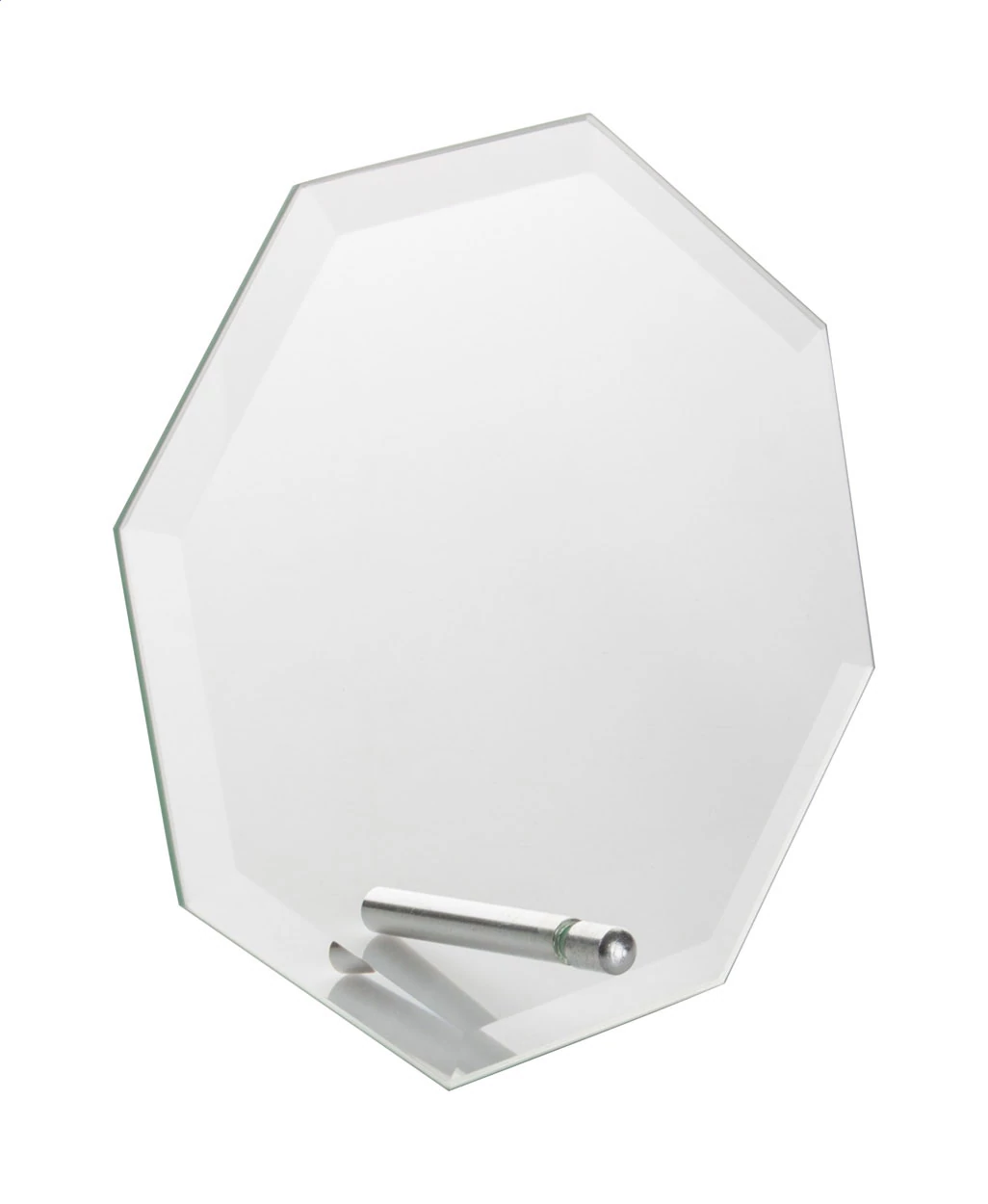 8 szögletű üveg trófea fém kitámasztóval. Szétszerelve, fekete díszdobozban szállítjuk.
