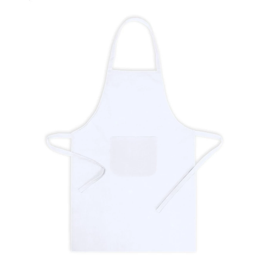 Színes kötény elülső zsebbel. 35% pamut, 65% poliészter.