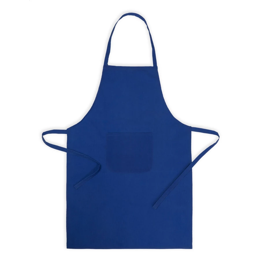 Színes kötény elülső zsebbel. 35% pamut, 65% poliészter.