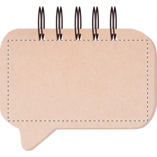 Különböző méretű öntapadós jegyzettömbök, újrahasznosított papírból készült, szövegbuborék alakú tokban (100 db 5,1×7,5 cm és 100 db 1,5×5,1 cm méretű).