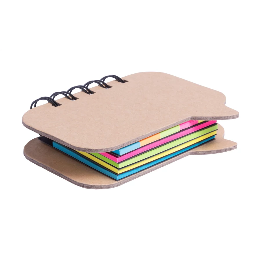 | Különböző méretű öntapadós jegyzettömbök, újrahasznosított papírból készült, szövegbuborék alakú tokban (100 db 5,1×7,5 cm és 100 db 1,5×5,1 cm méretű). | |