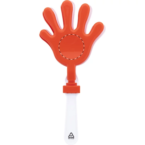 | Kéz alakú, újrahasznosított PP műanyagból készült kereplő. | |