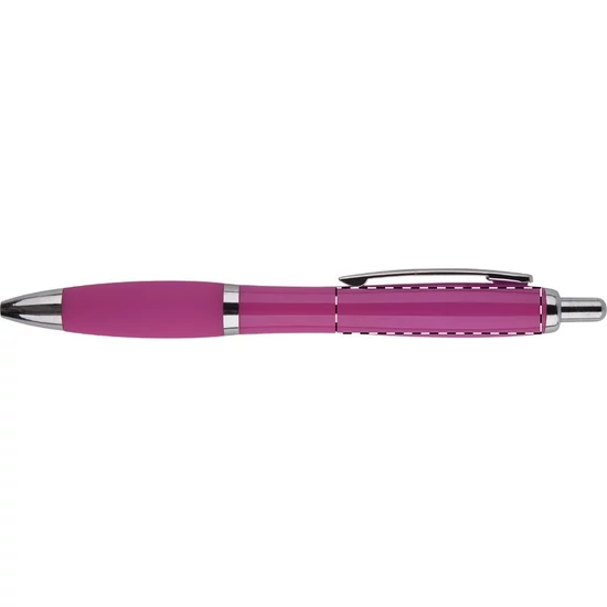 Műanyag golyóstoll fém színű végekkel. Kék tollbetéttel szállítjuk.