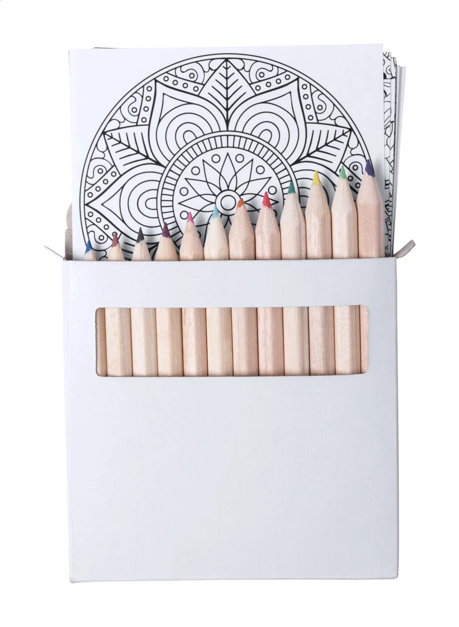 | Mandala színező szett 12 színes ceruzával és 12 ív mandala dizájnnal. | |