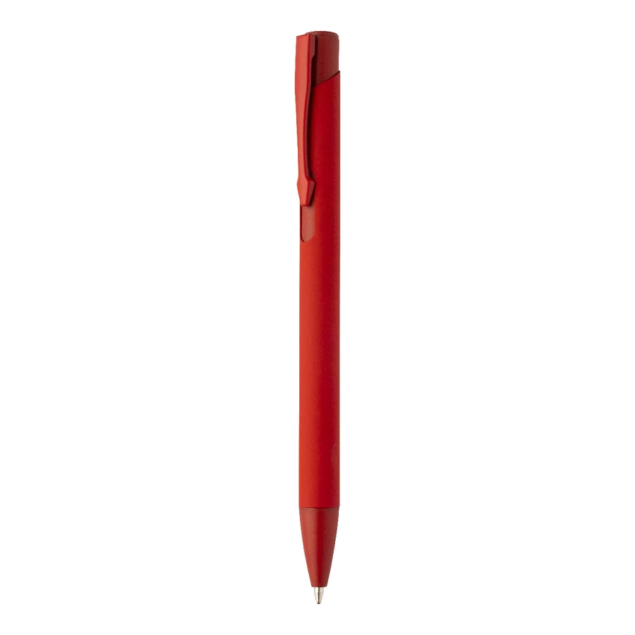 | Újrahasznosított alumínium golyóstoll gumírozott testtel és hozzá illő színű részletekkel. Kék tollbetéttel. | |