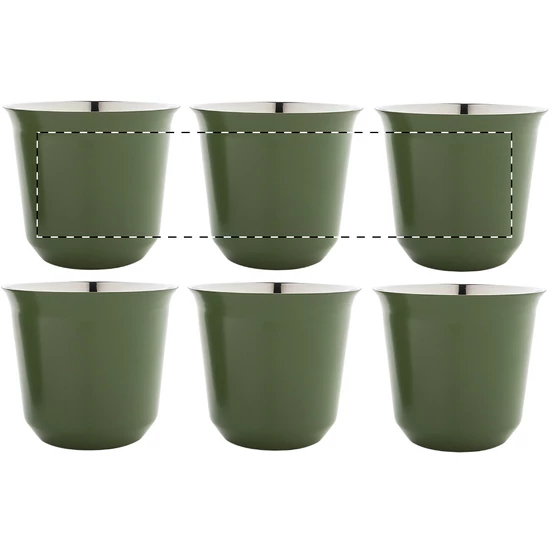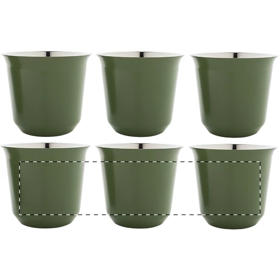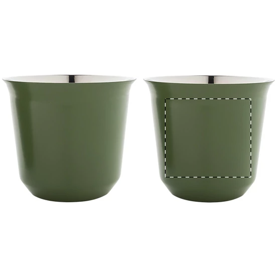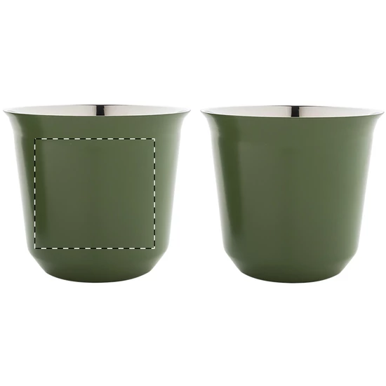 | 2 darabos eszpresszó csésze szett kávékapszula alakú, duplafalú, hőszigetelt thermo csészékkel, újrahasznosított rozsdamentes acélból, 80 ml. Kraft papír dobozban. | |