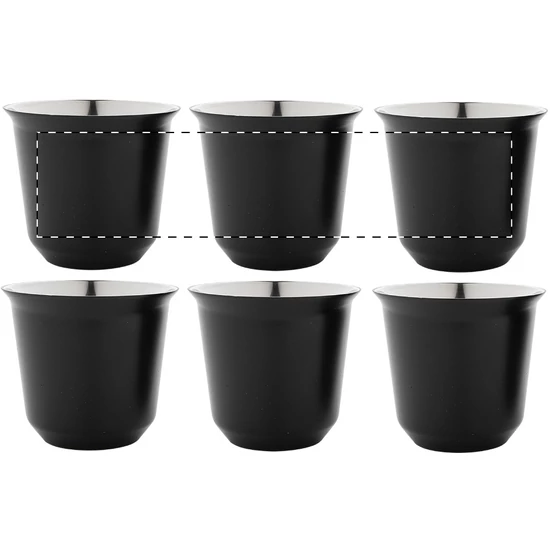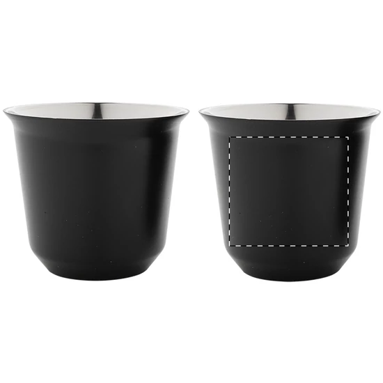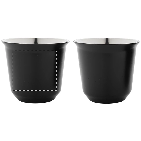 | 2 darabos eszpresszó csésze szett kávékapszula alakú, duplafalú, hőszigetelt thermo csészékkel, újrahasznosított rozsdamentes acélból, 80 ml. Kraft papír dobozban. | |