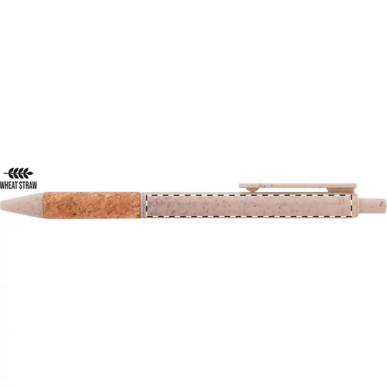 | Környezetbarát búzaszalma műanyag golyóstoll természetes parafa markolattal és színes részekkel. Kék tollbetéttel szállítjuk. | |
