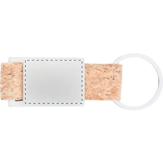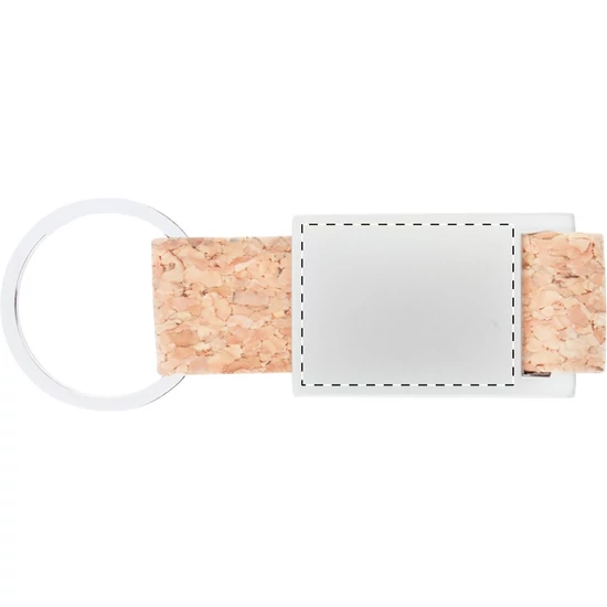 | Téglalap alakú, fém kulcstartó természetes parafa pánttal és fém karikával. | |