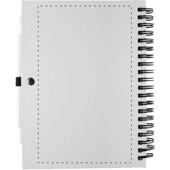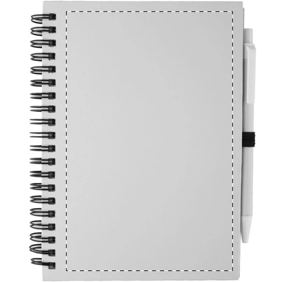 Karton borítású, 70 sima lapos spirál jegyzetfüzet, megegyező színű újrahasznosított papír golyóstollal. Kék tollbetéttel szállítjuk.