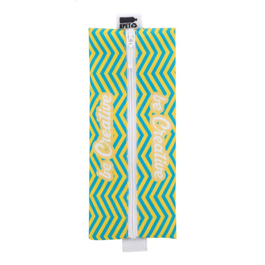 Egyedi gyártású, cipzáras tolltartó 600D RPET poliészterből, gumiszalaggal a jegyzetfüzet borítóra való rögzítéshez. Teljes felületén szublimációs nyomtatással ellátva és megkülönböztető RPET címkével. Minimális rendelési mennyiség: 50 db.