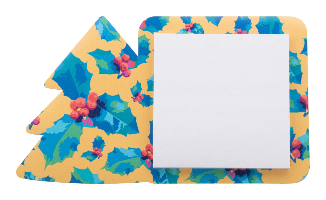| Egyedi gyártású, full colour nyomtatott karácsonyi hűtőmágnes és öntapadós jegyzettömb. 50 db újrahasznosított papírból készült öntapadós jegyzetlapot tartalmaz (75×75 mm). Minimális rendelési mennyiség: 100 db. | |