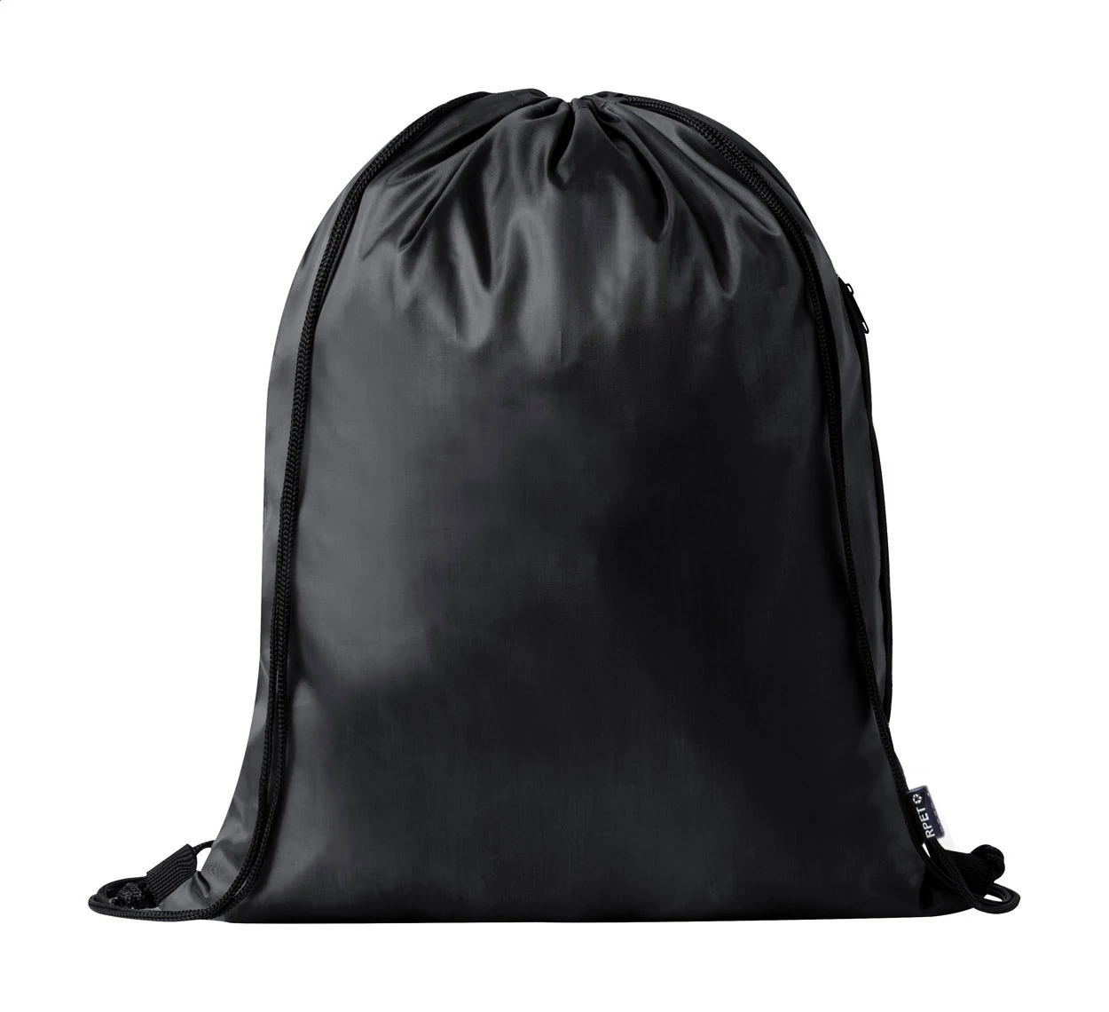 | RPET összehúzható hátizsák cipzáras oldalzsebbel, 210T RPET poliészter, megkülönböztető RPET címkével. | |
