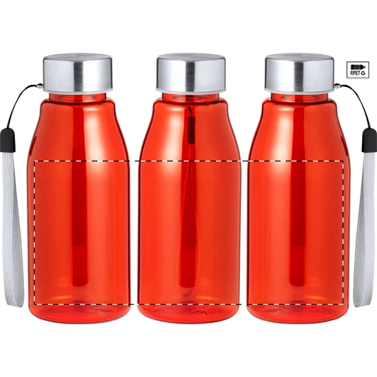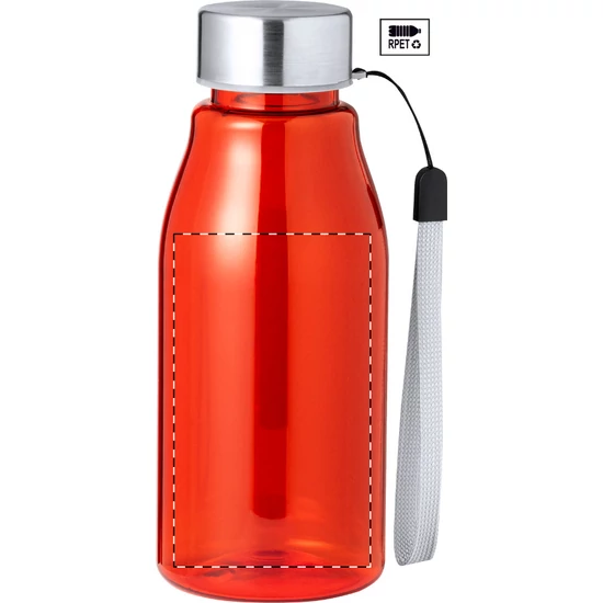 RPET kulacs rozsdamentes acél kupakkal és hordszíjjal, 350 ml. BPA-mentes. Nem alkalmas szénsavas italok tárolására.