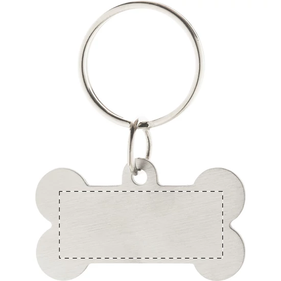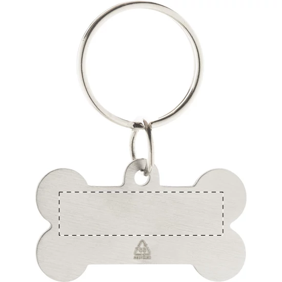 | Csont alakú, újrahasznosított rozsdamentes acélból készült kutyabiléta kulcstartóval. | |