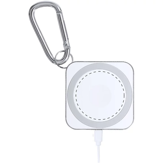 | Mágneses vezeték nélküli gyorstöltő (15W) alumínium borítással, karabinerrel. Okostelefonok, fülhallgatók és okosórák töltésére alkalmas. Kompatibilis az iPhone® 12 vagy újabb készülékekkel. | |