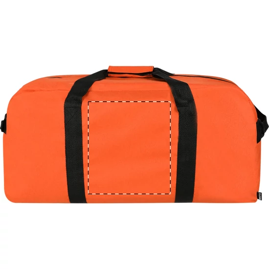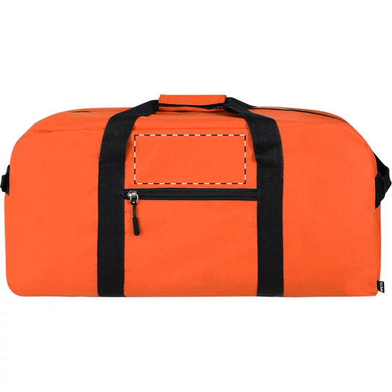 RPET sporttáska cipzáras fő rekesszel és első zsebbel, állítható vállpánttal. 600D RPET poliészter, megkülönböztető RPET címkével.