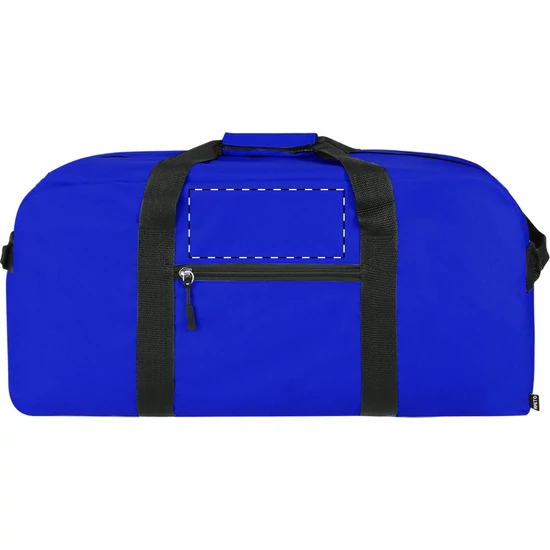 RPET sporttáska cipzáras fő rekesszel és első zsebbel, állítható vállpánttal. 600D RPET poliészter, megkülönböztető RPET címkével.