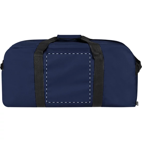 RPET sporttáska cipzáras fő rekesszel és első zsebbel, állítható vállpánttal. 600D RPET poliészter, megkülönböztető RPET címkével.