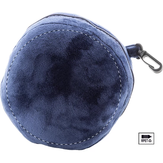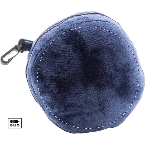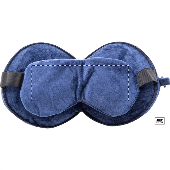 RPET poliészter nyakpárna beépített szemmaszkkal és rugalmas pántokkal. Kompakt, gömb alakúra cipzárazható a könnyű tárolás érdekében, PP karabinerrel a bőröndhöz való rögzítéshez. Megkülönböztető RPET címkével.