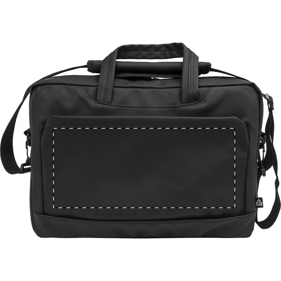 | Vízálló, puha, újrahasznosított PU bőr dokumentum- és laptoptáska cipzáras rekesszel, cipzáras elülső zsebbel, állítható vállpánttal és párnázott laptop rekesszel (15"). Megkülönböztető újrahasznosított PU címkével. | |