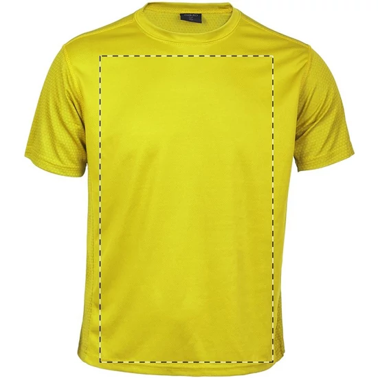| 100% poliészter, légáteresztő sport póló hatszögletű szövésmintájú részletekkel, 135 g/m². | |