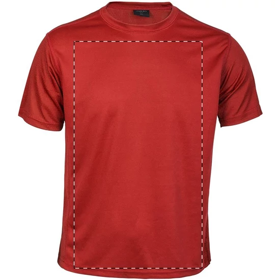 | 100% poliészter, légáteresztő sport póló hatszögletű szövésmintájú részletekkel, 135 g/m². | |