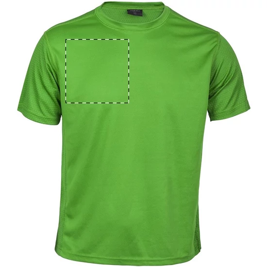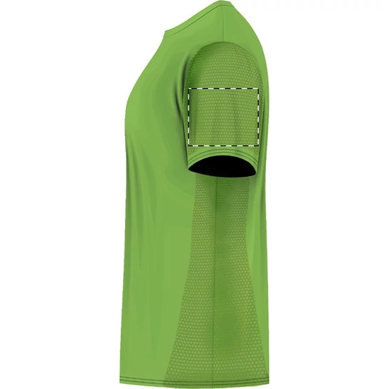 | 100% poliészter, légáteresztő sport póló hatszögletű szövésmintájú részletekkel, 135 g/m². | |