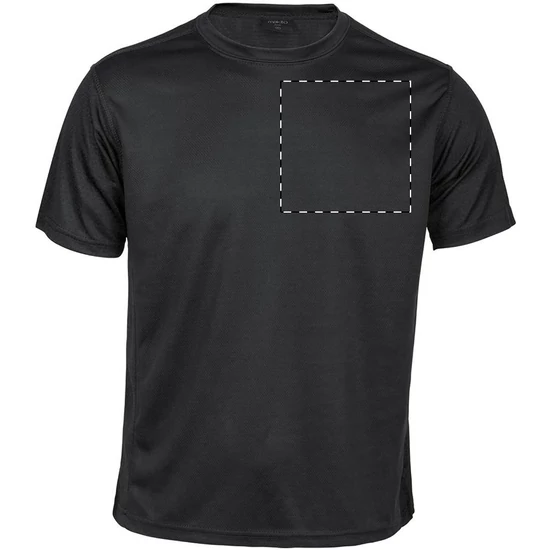 | 100% poliészter, légáteresztő sport póló hatszögletű szövésmintájú részletekkel, 135 g/m². | |