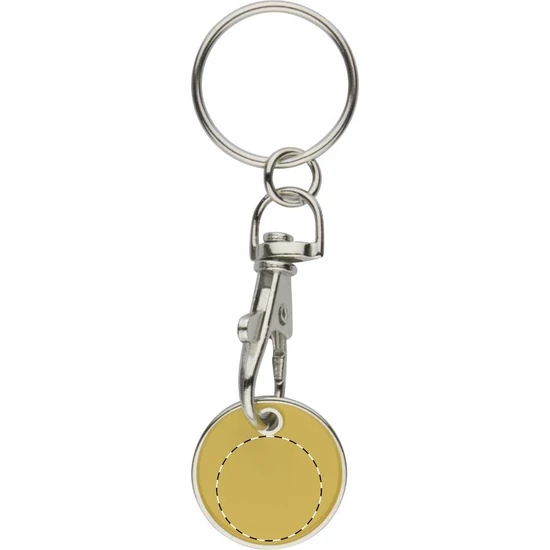 | Fém bevásárlókocsi érme karabinerrel és kulcskarikával, melynek egyik oldala színes, másik oldalán pedig bevásárlókocsi logó található. Érme mérete: ø23×1,7 mm. | |