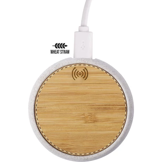 Vezeték nélküli mobiltelefon-töltő (10W) környezetbarát búzaszalma műanyag és bambusz borítással. USB töltőkábellel szállítjuk.