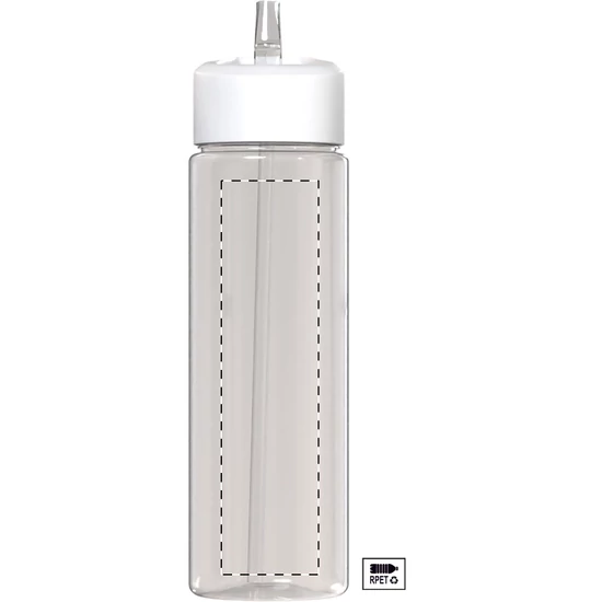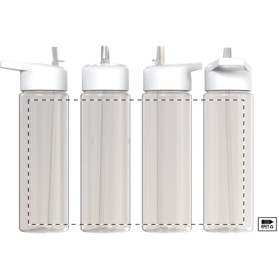 RPET sportkulacs PP felhajtható fedéllel és beépített szívószállal. 650 ml. BPA mentes. Nem alkalmas szénsavas italok tárolására.