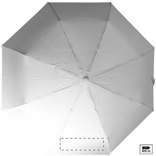 Nagy méretű, automata, szélálló és összecsukható esernyő 8 panellel, hozzáillő színű tasakban. Fém kerettel, üvegszálas bordákkal és ABS fogantyúval, kézi szíjjal. 190T RPET pongee. Megkülönböztető RPET címkével.