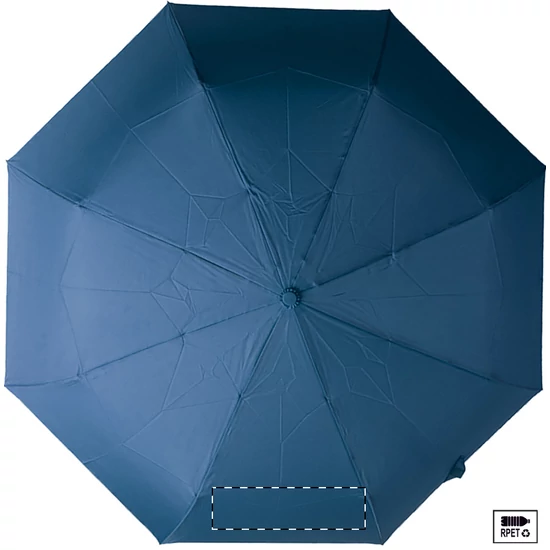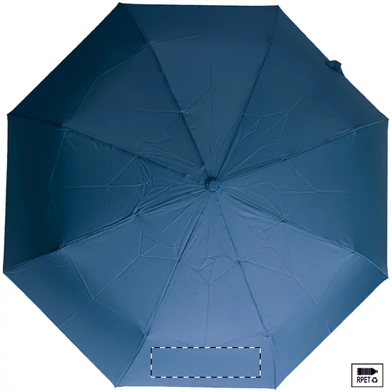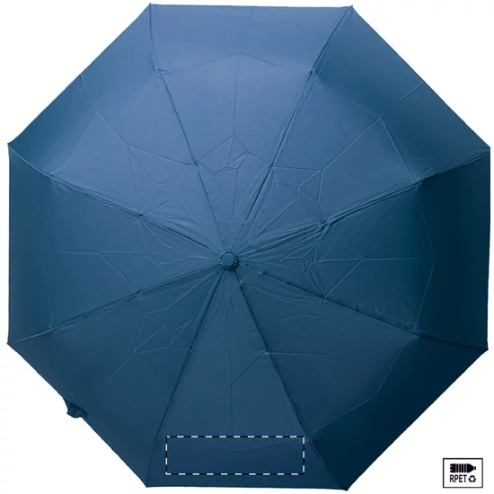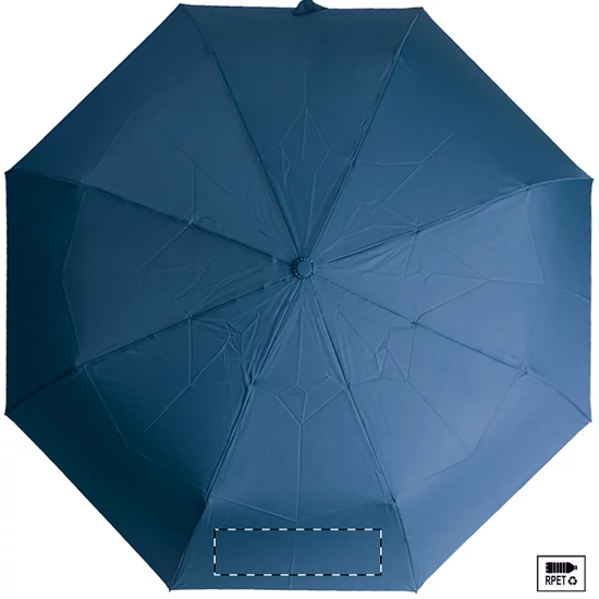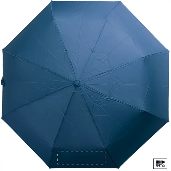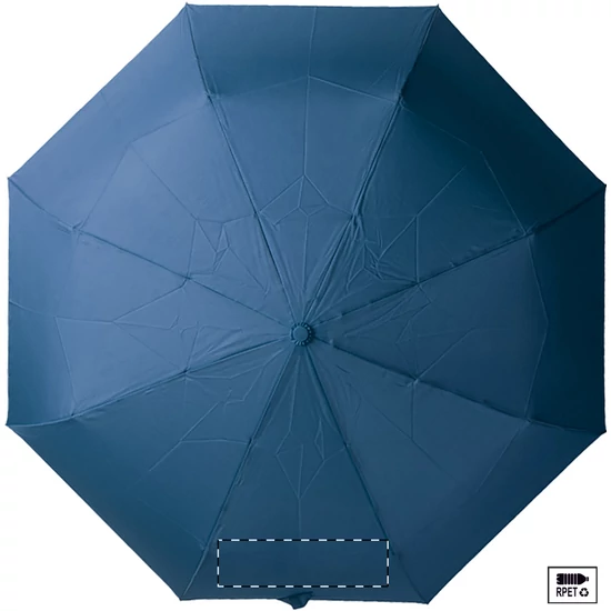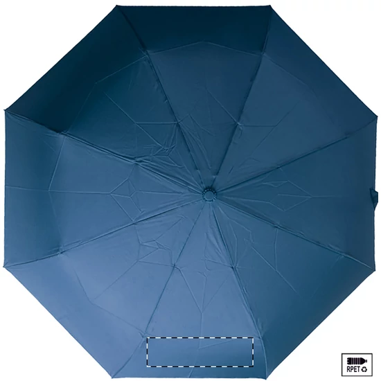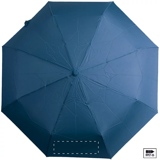 Nagy méretű, automata, szélálló és összecsukható esernyő 8 panellel, hozzáillő színű tasakban. Fém kerettel, üvegszálas bordákkal és ABS fogantyúval, kézi szíjjal. 190T RPET pongee. Megkülönböztető RPET címkével.