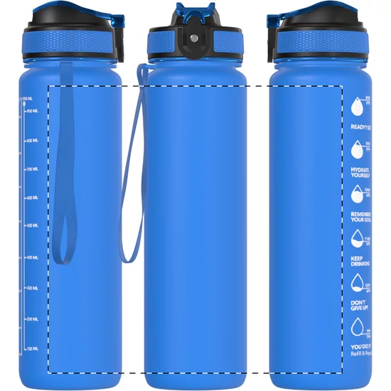 | BPA-mentes PET kulacs matt felülettel, kapacitásjelzővel, ivófedéllel és hordszíjjal. 1000 ml. | |