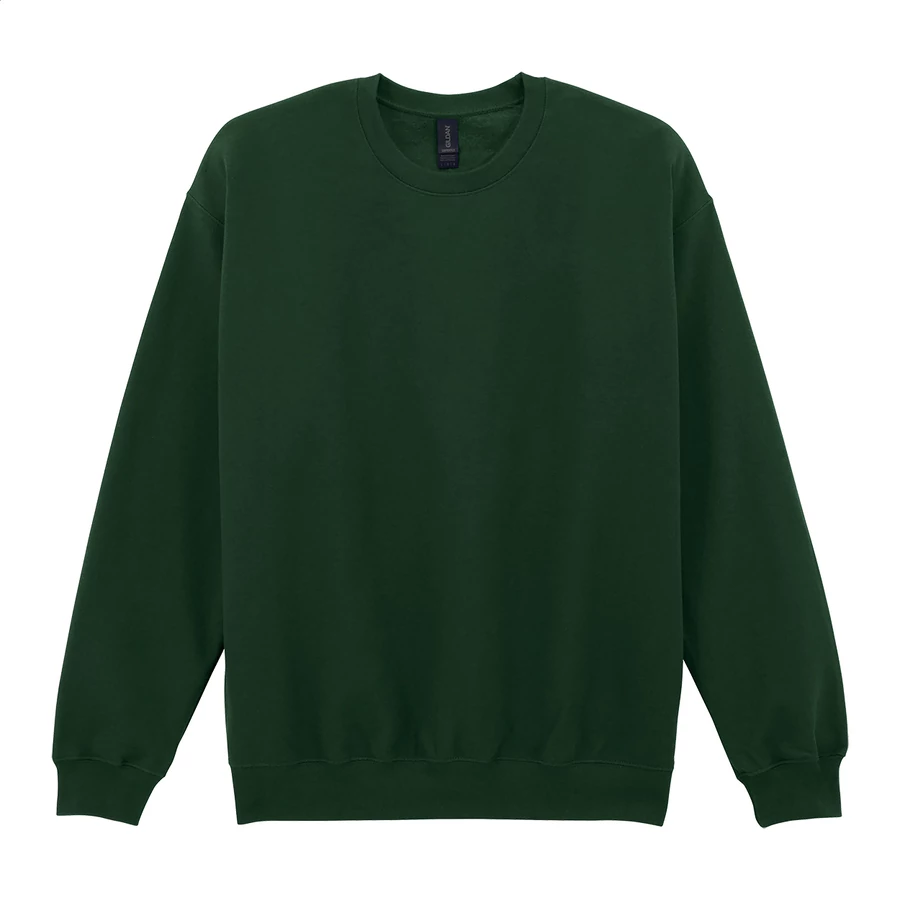| 80% pamut és 20% poliészter anyagú, kerek nyakú pulóver. 285 g/m² (fehér 278 g/m²). Gildan márkatermék. | |