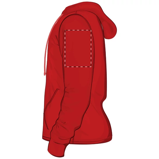 80% pamut és 20% poliészter anyagú, kapucnis pulóver elülső zsebbel. 285 g/m² (fehér 278 g/m²). Gildan márkatermék.